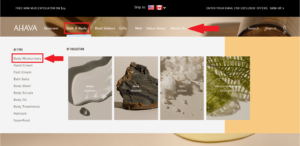 1. In the first step, simply pick an AHAVA coupon from BerryDeals and copy it to your device. After choosing your coupon, you need to go to the AHAVA website for buying the product. On the menu bar, there are quite a few categories to choose from. You have to select which type of product you want to buy. Click on the desired category.