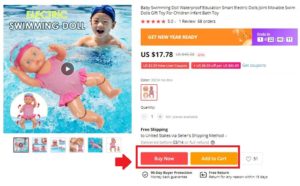 - Then choose the product’s specifications (such as color, quantity, material, etc.) and add the product to your cart by taping “add to cart”. Alternatively, you can directly click the “Buy now” option.