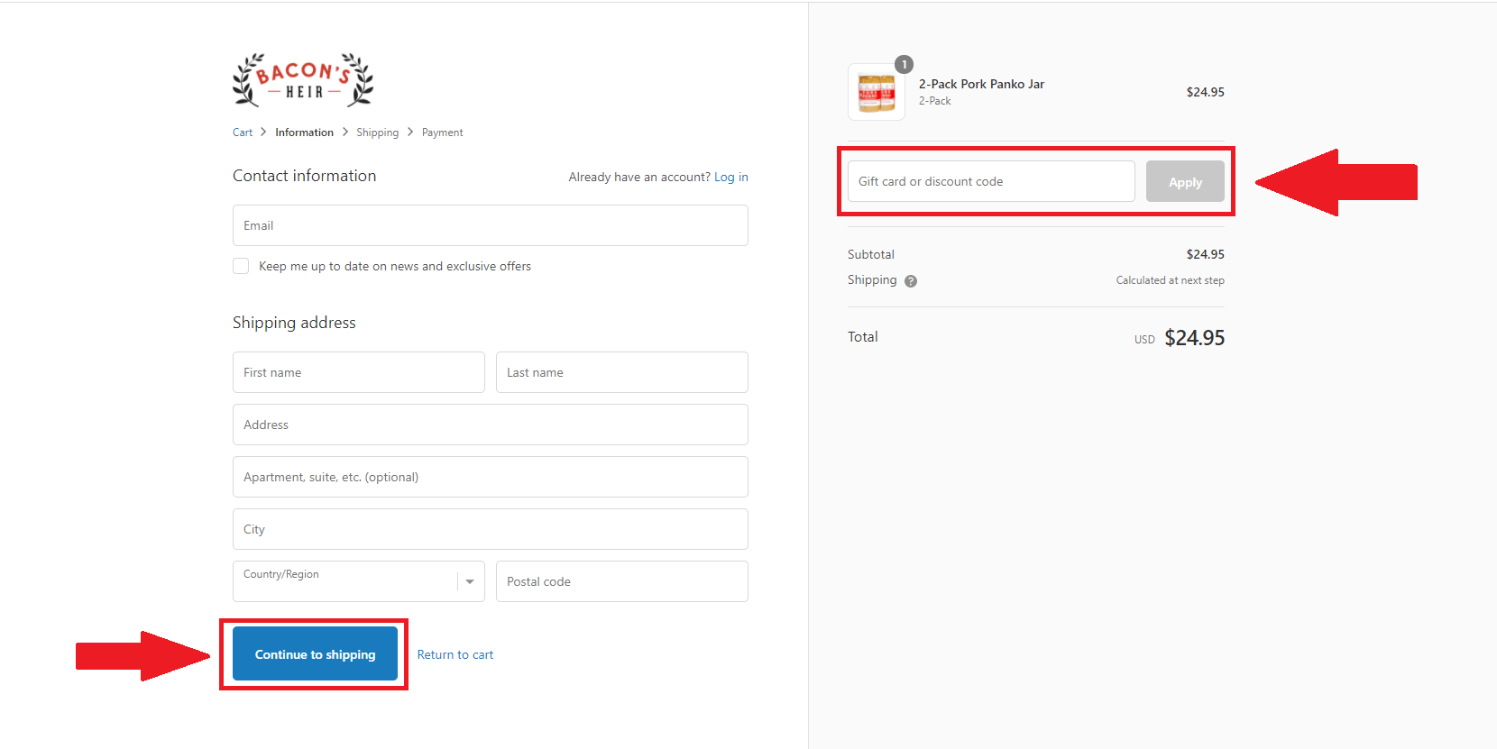 - Finally, there you can see the field “Gift card or discount code” for pasting the coupon you have copied from the BerryDeals website. Then click on “Apply” to use the code. On the next page, there you can see a field for the shipping address. Fill in all the required fields accurately. Then make payment for the products.