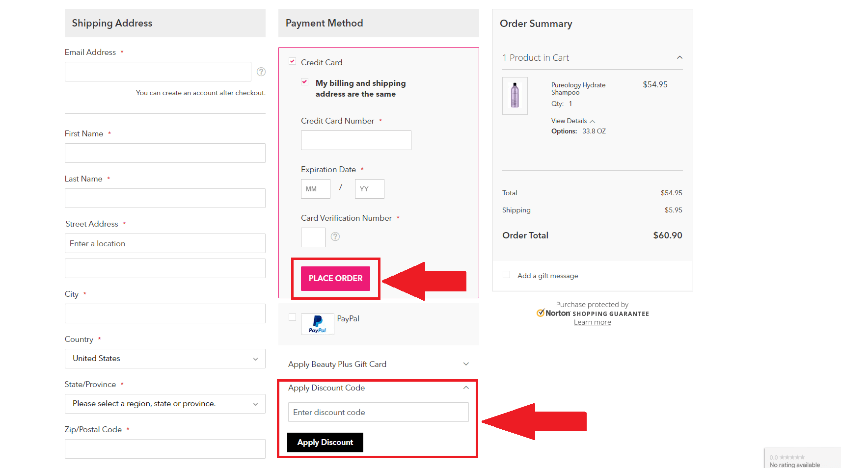 - Lastly, in the shopping cart, you can add or remove products. There you can see the field “Enter discount code” for pasting the coupon you have copied from the BerryDeals website. Then click on “Apply” to use the code. There you can see a field for the shipping address. Fill in all the required fields accurately. Also, there is a field for payment methods. Fill in all the data and click on the “Place Order.” On the next page, make payment for the products.