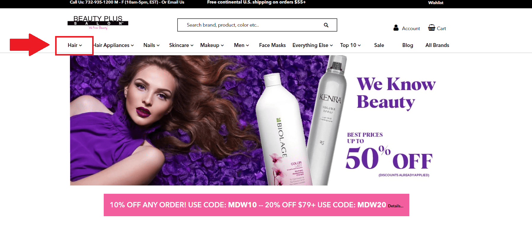 - Initially, you must go to the BerryDeals website and get a coupon for the Beauty Plus Salon. After getting the coupon code, you must head over to the Beauty Plus Salon website. You will see various types of categories on the menu bar. From there, select your desired product category and click on the category name.