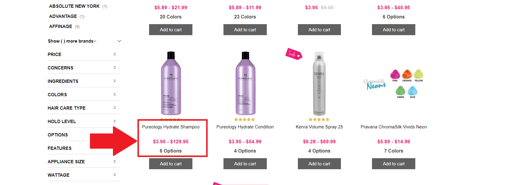 - After choosing the category, you will get different products of the same kind on the window on the next page. From there, you have to find the individual product that you want to buy and click on the product name.