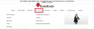 - First, choose a coupon from this page and navigate to the Bebe website. Then choose a category from Bebe’s home page menu bar.