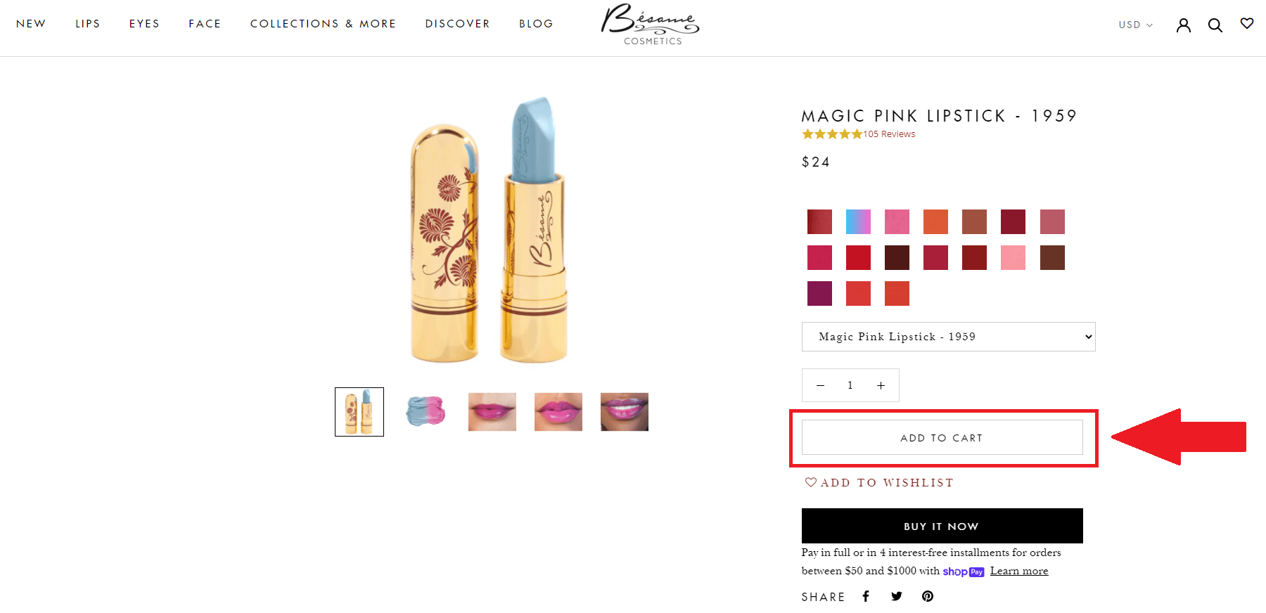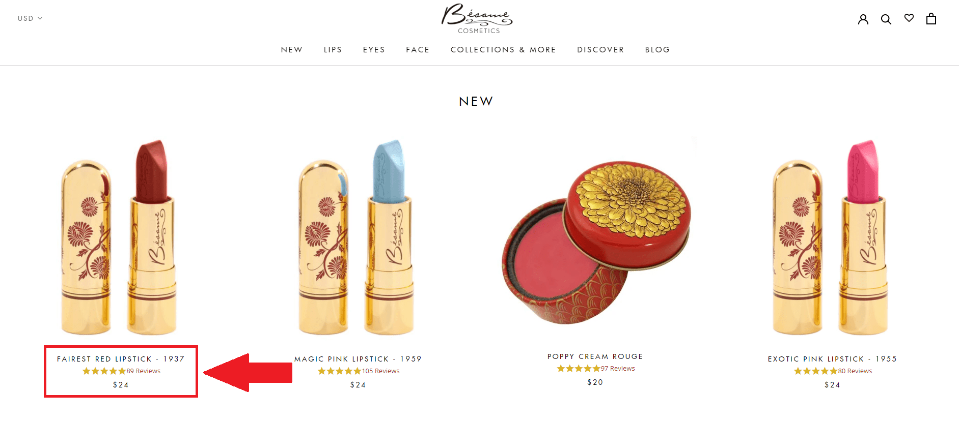 - After moving to the official website (www.besamecosmetics.com) of Besame Cosmetics, you will find a minimum discount on all the products, and you also will get a discount for your first order on their website.