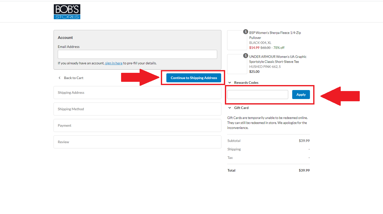 - In the end, you can see the “Reward Code” field using the coupon you have copied from the BerryDeals website. After using the code, you need to click on “Apply” to discount the shop. There you will get a field for your shipping address. You must fill in the necessary fields accurately. Then click on the “Continue to Shipping Address.” On the next page, make payment for the items.
