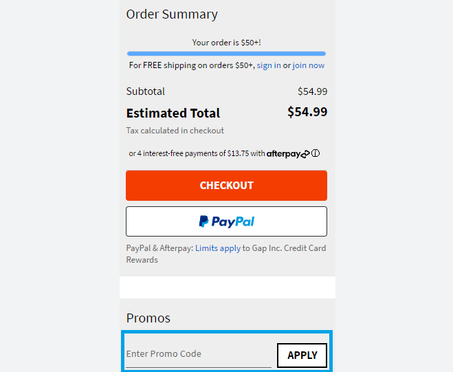 Find the promo code input box labelled “Discount Code” or “Promo Code.”