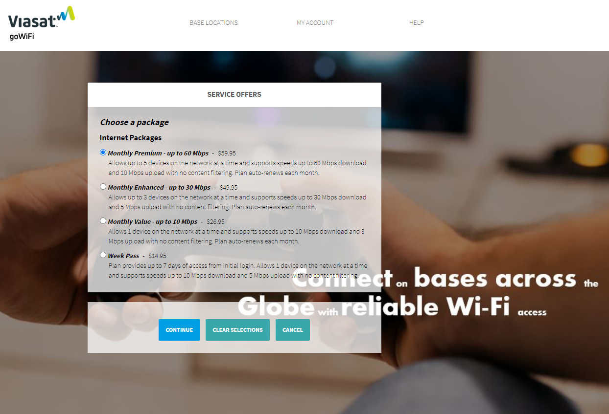 Select the GoWIFI Navy plan that best fits your internet needs.