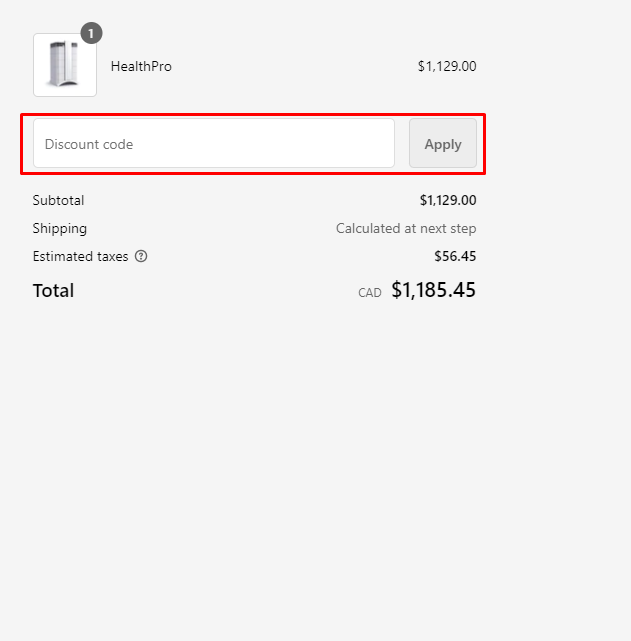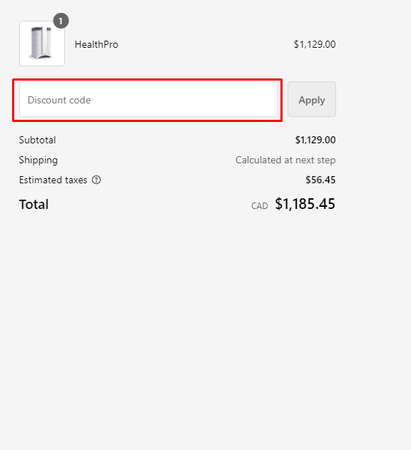 Navigate to the checkout page where you’ll see a field to enter your discount code.