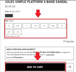 - Now Scroll to the middle of the page to add them to your shopping bag by clicking “add to cart”. After adding, you might have to select a size depending on the product.