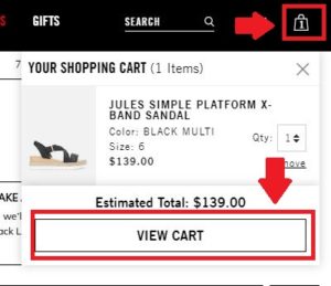 - When the item is added to the cart, tap the bag logo on the top right of the menu bar, and click “View Cart”.
