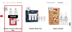 - First, grab your coupon code from our website and waste no time to get to Kiehl’s web page. Then click “SHOP GIFTS FOR HER” to choose your products that you are agreed to buy. Alternatively, you can check out other products from the top bar.