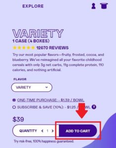 - Select a cereal to put in your virtual shopping bag by clicking “add to cart”.