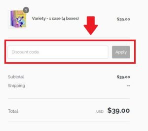 - On the right side of this page, you will find the coupon entry box named “Discount Code”. Paste your code to the box and tap apply.