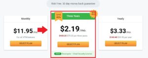 - From the next page, select a package and click the bright yellow “Select plan” button to move on to the next step of buying.