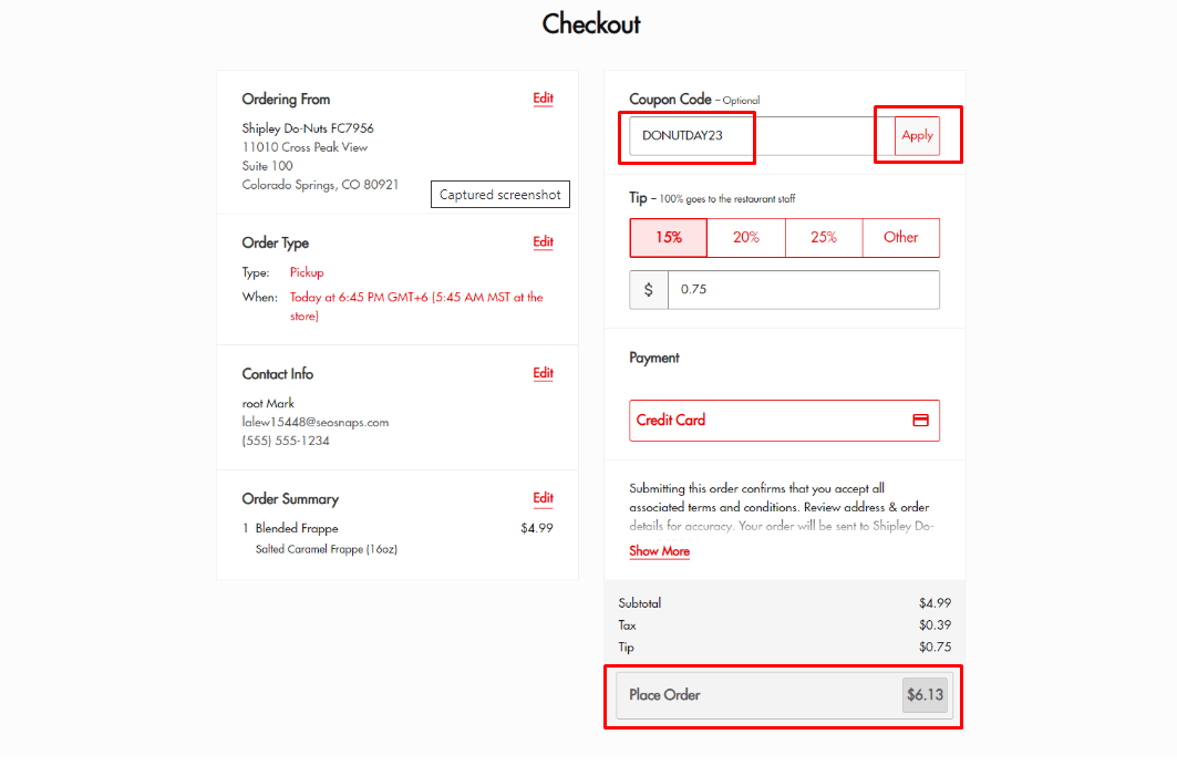 Redeeming a discount code at Shipley DoNuts is a seamless process that enhances the overall purchasing experience: